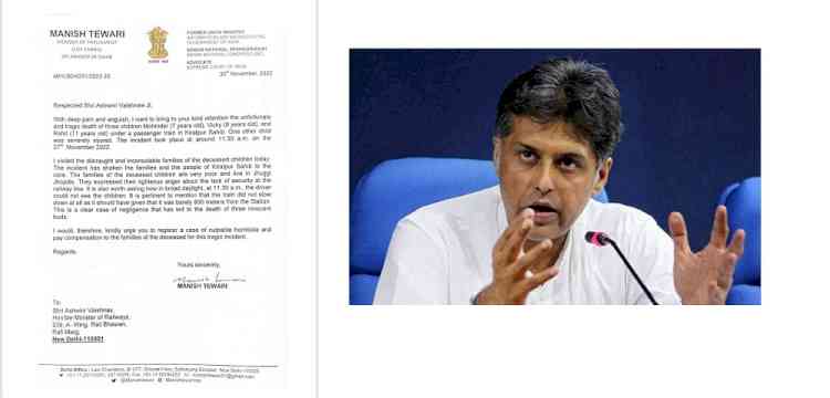 Chandigarh/Rupnagar, November 30, 2022: Lok Sabha Member from Sri Anandpur Sahib and former Union Minister Manish Tewari has demanded registration of a case of culpable homicide regarding the tragic death of three children in the train accident at Lohand Bridge at Sri Kiratpur Sahib. In a letter written to Railway Minister Ashwini Vaishnav he demanded compensation to the victims’ families.