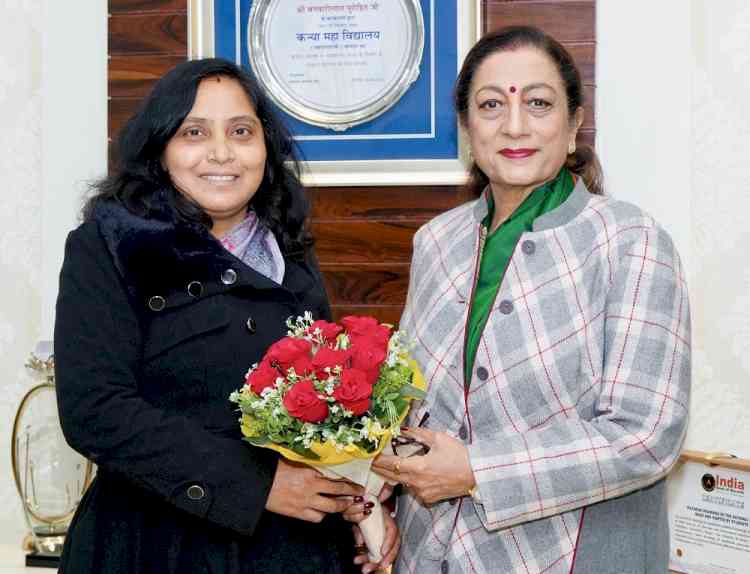 Principal Prof. Dr. Atima Sharma Dwivedi felicitate KMV’s Dr. Sangeeta Prasher