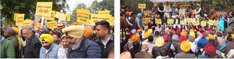 Addressing the protest, Finance Minister Harpal Singh Cheema said that Congress, Akali Dal, and BJP-like parties had always promoted dynastic politics, where only a few families ruled. “The AAP had broken this tradition by bringing educated youth from ordinary homes into the Assembly and the Cabinet. He said the protest aimed to expose the mindset of those who hated Dalits while sitting inside grand palaces,” he asserted.