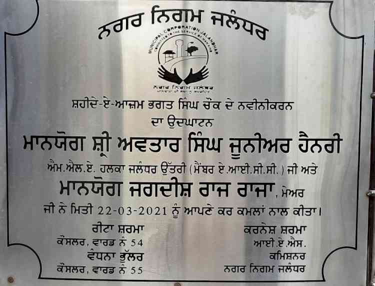 जालंधर: मनोरंजन कालिया पूर्व मंत्री व् पूर्व प्रदेश अध्यक्ष पंजाब ने एक पत्र मुख्यामंत्री कैप्टेन अमरिंदर सिंह को लिखा है जिसमे सौदर्येकरण के नाम पर शहीद भगत सिंह चौक में शहीद भगत सिंह के नए लगाए बुत पर जाँच की मांग की है I उल्लेखनीय है नगर निगम जालंधर ने शहीद भगत सिंह चौंक में, पहले लगे हुए शहीद भगत सिंह के धड़ का बुत बदल कर 5 फुट ऊँचा शहीद भगत सिंह का बुत लगाया लेकिन यह बुत शहीद भगत सिंह की प्रमाणित तस्वीरों से मेल नहीं खाता है और यह बुत सिर्फ 11 इंच पेडस्टल पर लगाया गया है I जब भी कोई व्यक्ति नमन करने के लिए बुत के पास आता है तो व्यक्ति के मुकाबले में बुत छोटा दिखाई देता है I शहीद भगत सिंह का नाम न तो पेडस्टल पर और न ही कही और जगह लिखा है I शहीद भगत सिंह का नाम उद्धघाटन प्लेट पर बहुत छोटे अक्षरों पर "शहीद भगत सिंह चौंक" के रूप में लिखा है और जिन महानुभावो ने चौंक का उद्धघाटन किया है उनका नाम बड़ा लिखा हुआ है I
