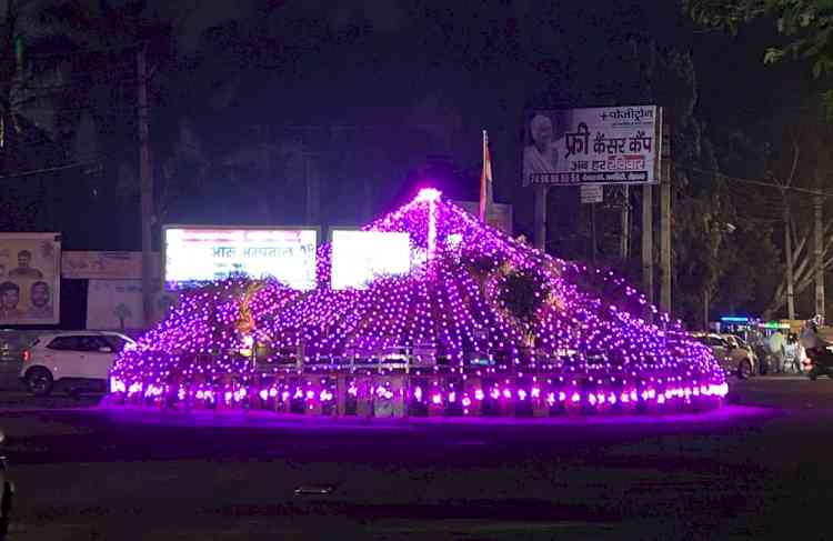 दीपावली के पावन पर्व पर ज़िला प्रशासन द्वारा रंग बिरंगी लाइटों से सजाए गए रोहतक शहर के प्रमुख चौक। चित्र: गिरीश सैनी