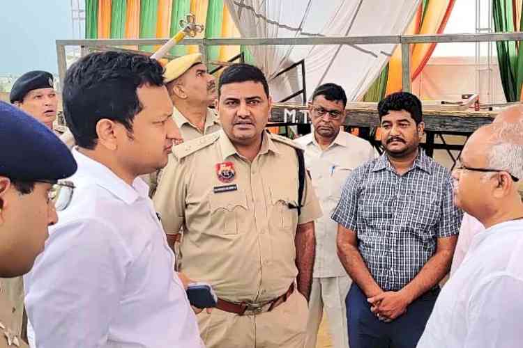 उपायुक्त ने पुलिस अधीक्षक के साथ समारोह स्थल पर लिया तैयारियों का जायजा।