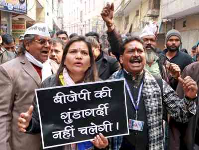 AAP stages protest outside BJP MLA Abhay Verma's house